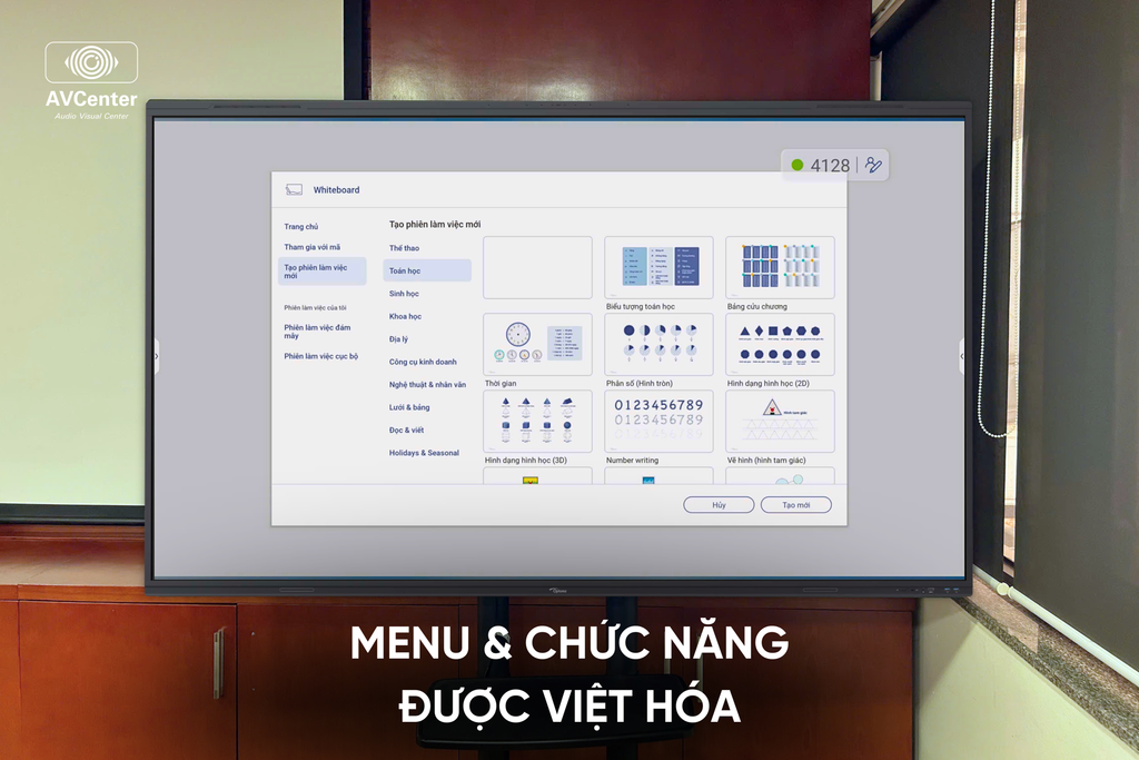 Bộ công cụ tương tác thông minh: bảng trắng, chú thích trực tiếp, chia đôi màn hình, đa điểm chạm – hỗ trợ dạy học & trình bày hiệu quả.