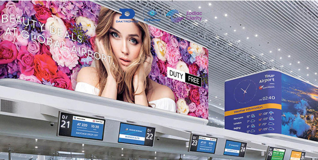 Đơn vị triển khai màn hình LED uy tín cho sân bay: Daktronics – Zodiac Clarity