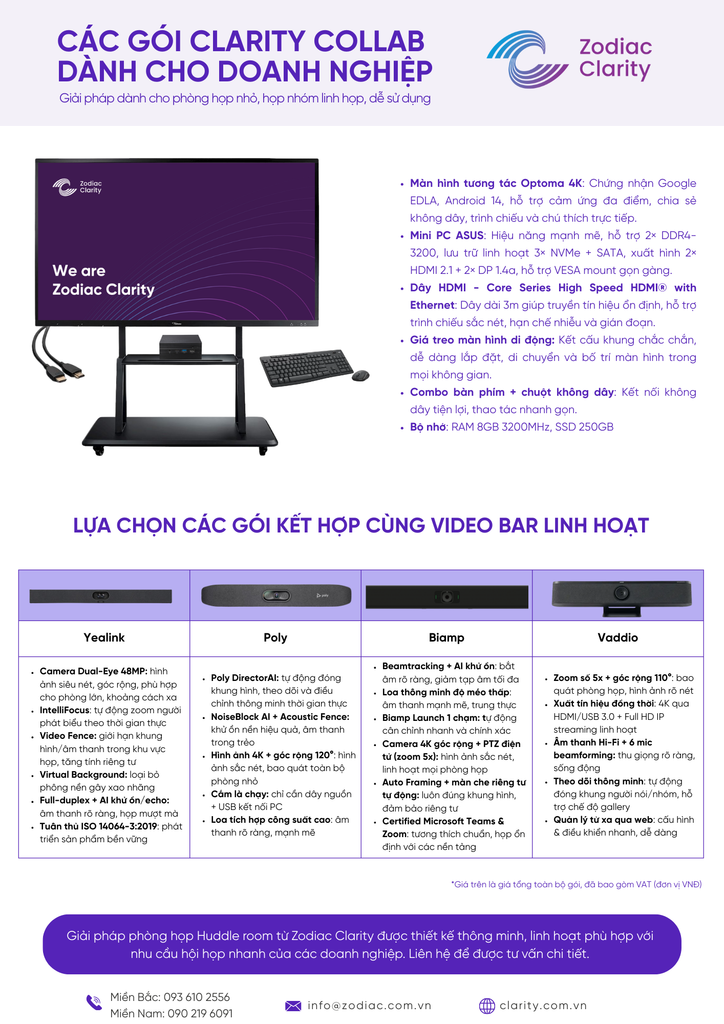 Combo Màn hình tương tác Optoma 5753rk & Vaddio Venture® VideoBAR cho phòng họp nhỏ/ Huddle room