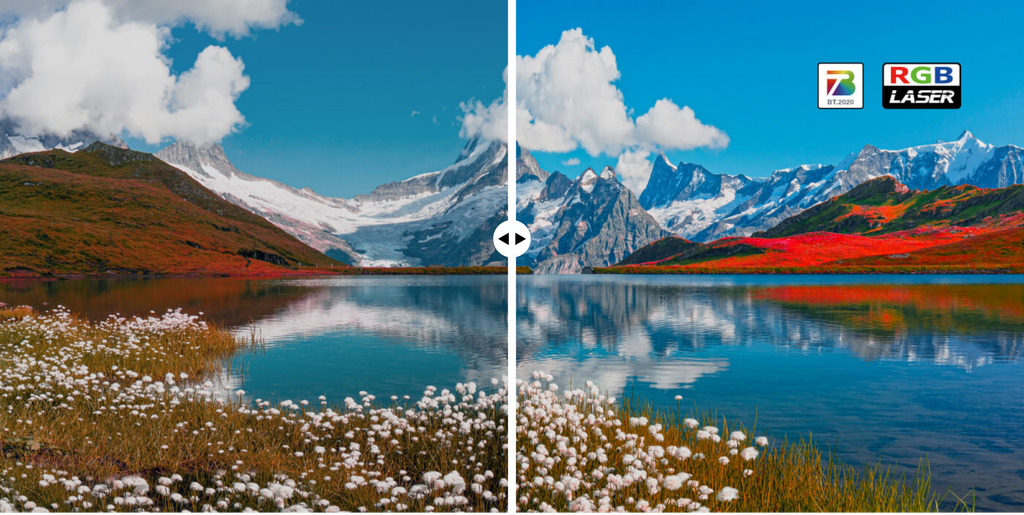 Máy chiếu sử dụng công nghệ laser RGB tiên tiến nhất, tạo ra ba tia laser đỏ – xanh lá – xanh dương thuần khiết, tái tạo gần như toàn bộ dải màu được sử dụng trong điện ảnh. Nhờ đó, bạn có thể tận hưởng màu sắc rực rỡ, độ sáng vượt trội và độ chính xác màu tối đa ngay trong chính phòng khách của mình.