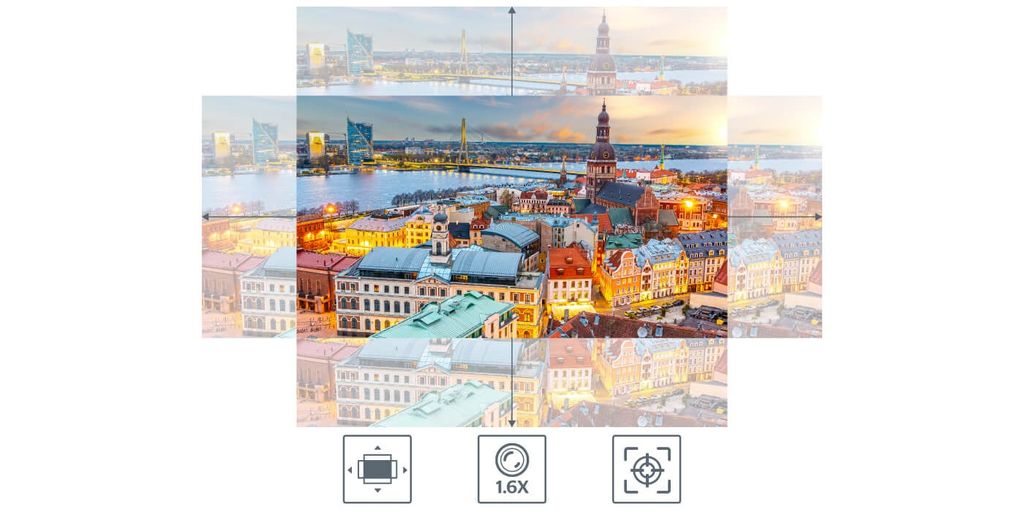 UHR90DV được trang bị dịch chuyển ống kính ngang ±25% và dọc ±55%, zoom quang 1.6x, điều khiển điện và ghi nhớ vị trí ống kính, giúp điều chỉnh cực kỳ thuận tiện cho mọi không gian.